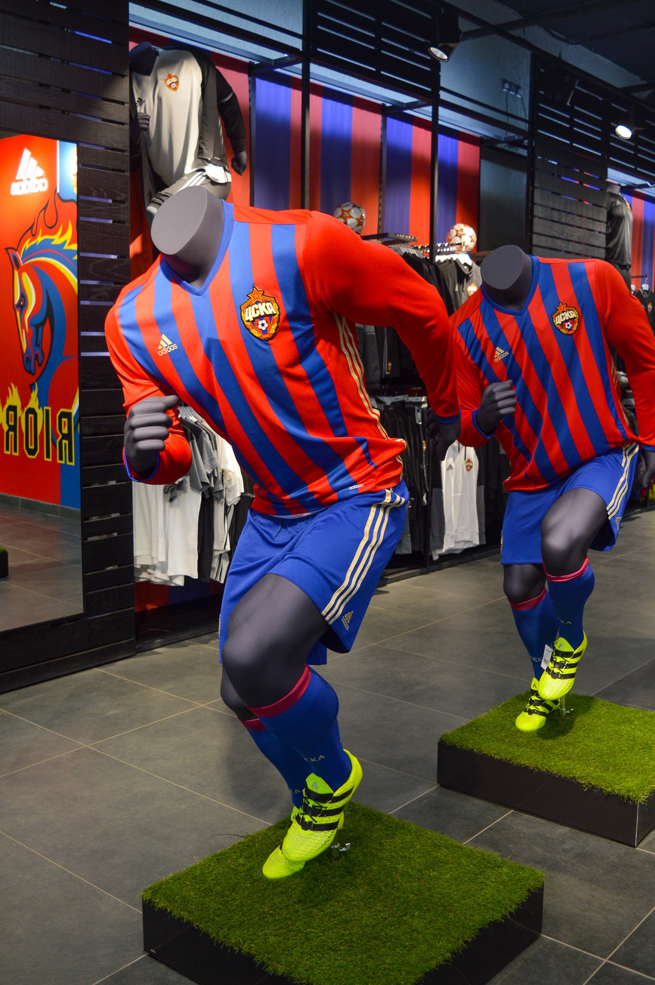 На память о посещении стадиона можно приобрести что-нибудь из армейской атрибутики. Фирменный клубный магазин ЦСКА находится на первом уровне Северной входной группы.